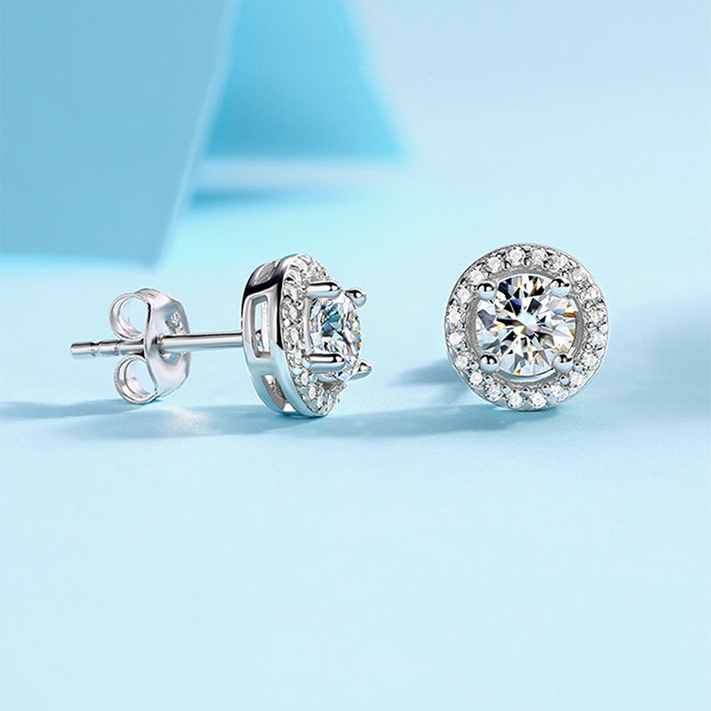 【#178】Four-Claw Simple Round Moissanite Stud Earrings In 925 Sterling Silver