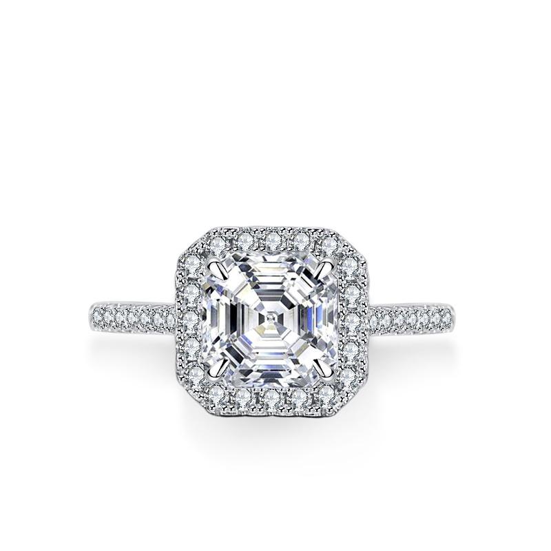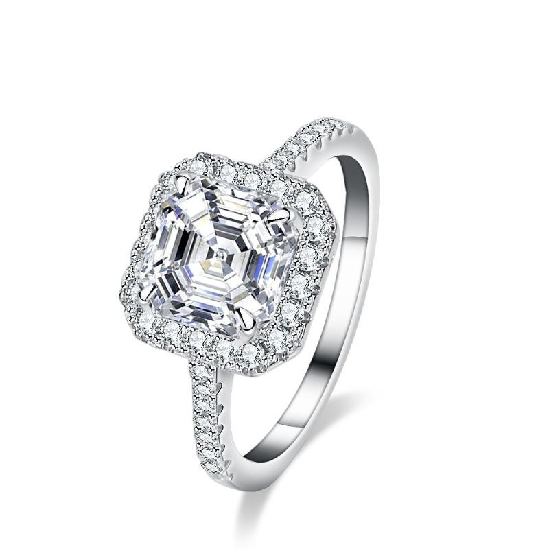 【#87】925 Sterling Silver 3CT Asscher Cut Moissanite Ring