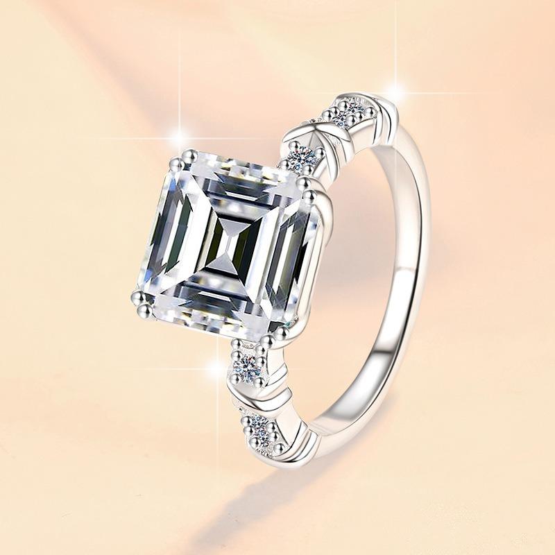 【#84】925 Sterling Silver 5CT Asscher Cut Synthetic Moissanite Ring