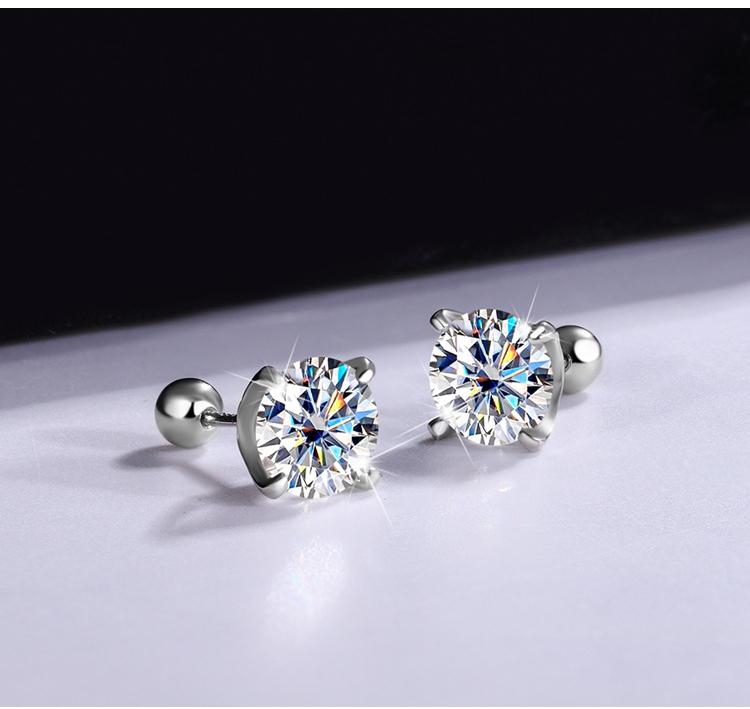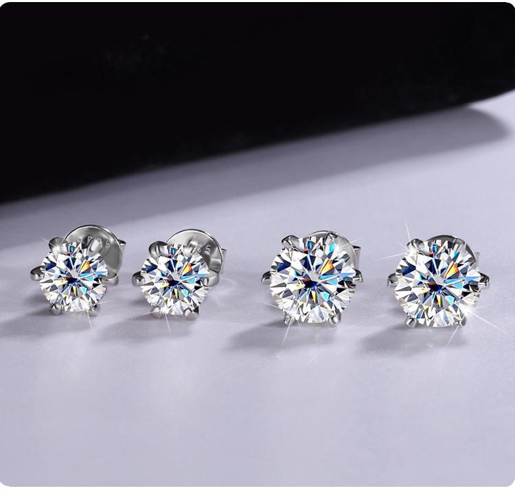 【#164】925 Sterling Silver Four Prong Moissanite Stud Earrings